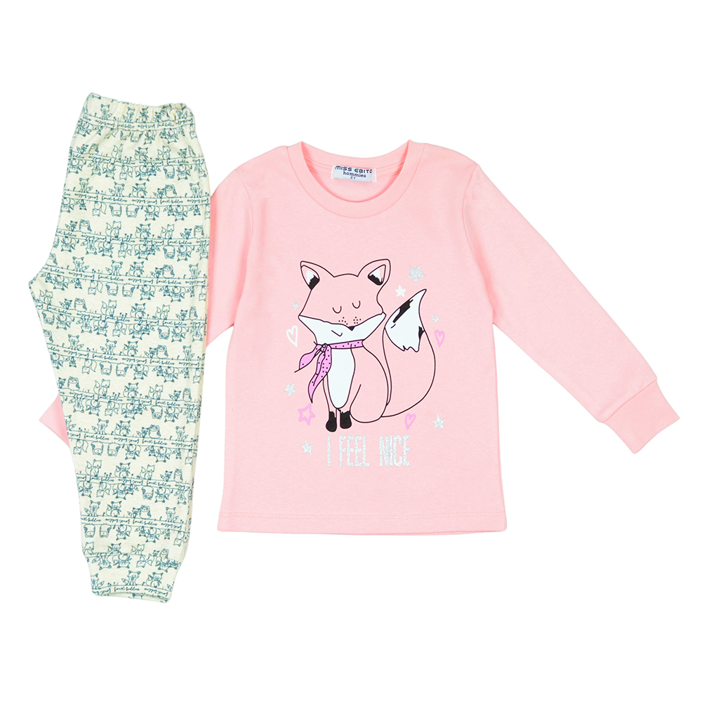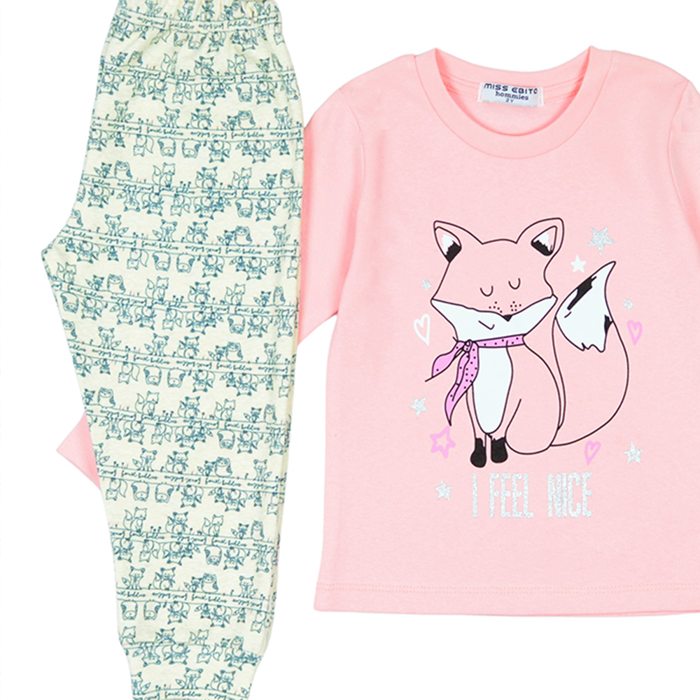 Παιδική πυζάμα με τύπωμα και παντελόνι με animal print, 100% Βαμβάκι