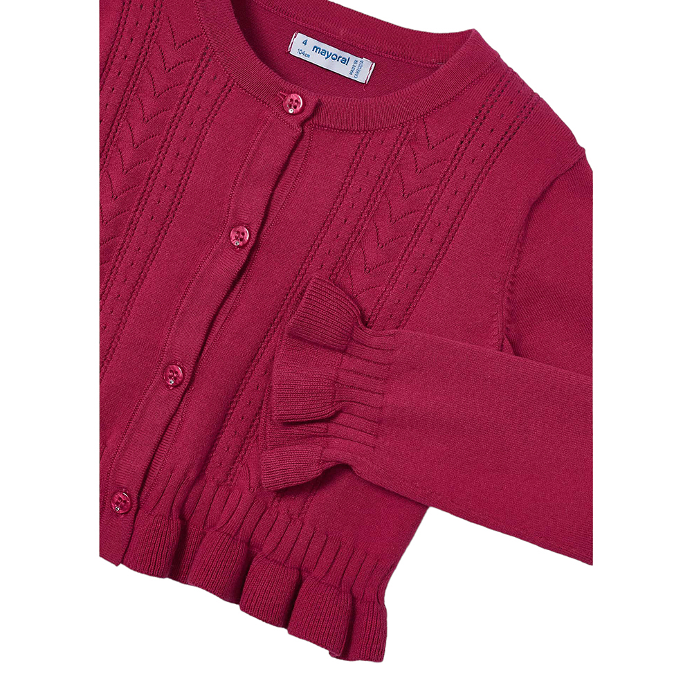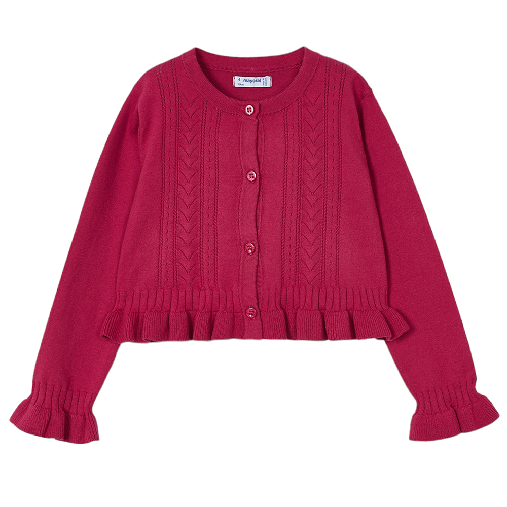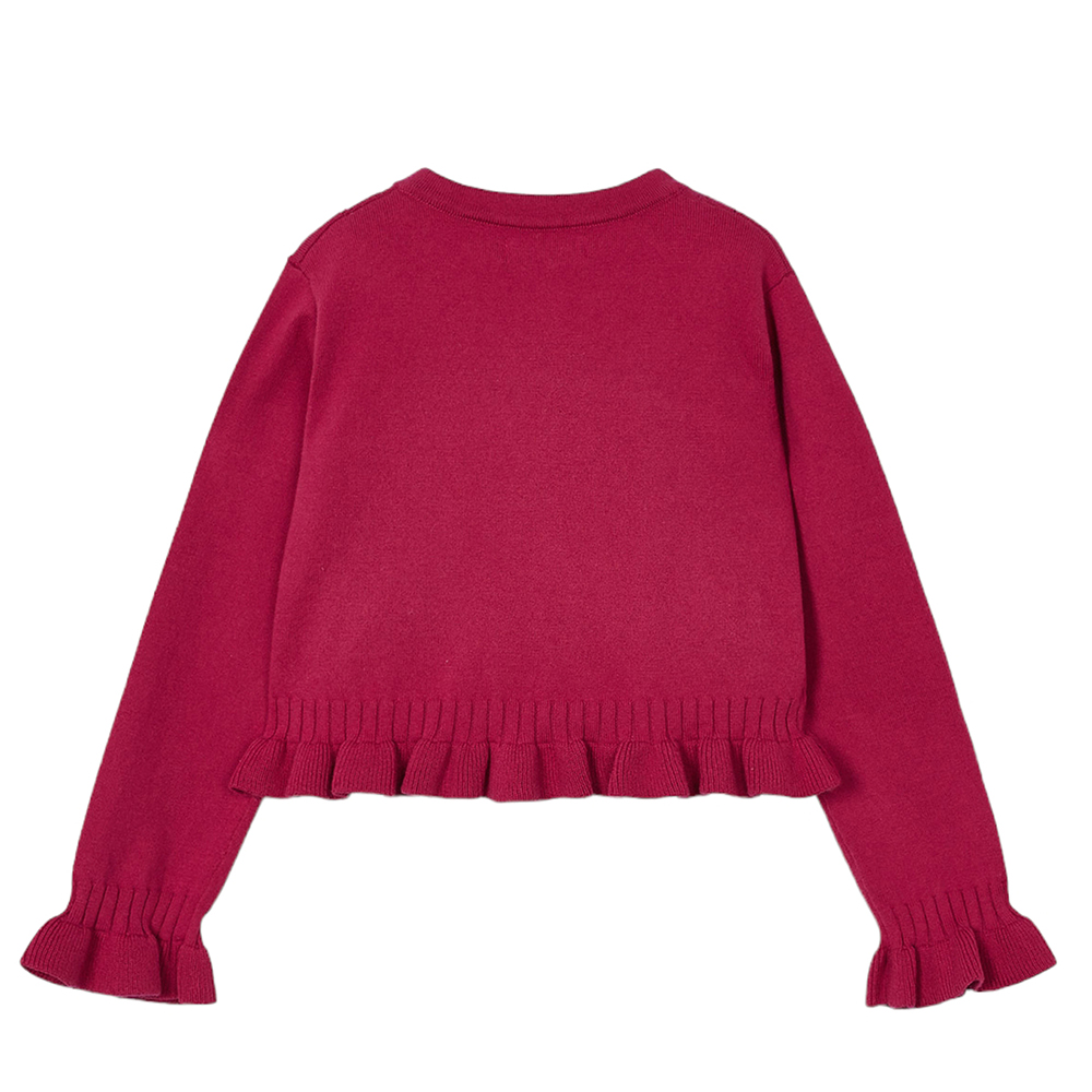 Παιδική πλεκτή ζακέτα με βολάν στα μανίκια και ιδιαίτερα κουμπιά, 68% Ακρυλικό, 12% Πολυέστερ, 11% Νάιλον, 6% Μαλλί, 3% Ελαστάνη