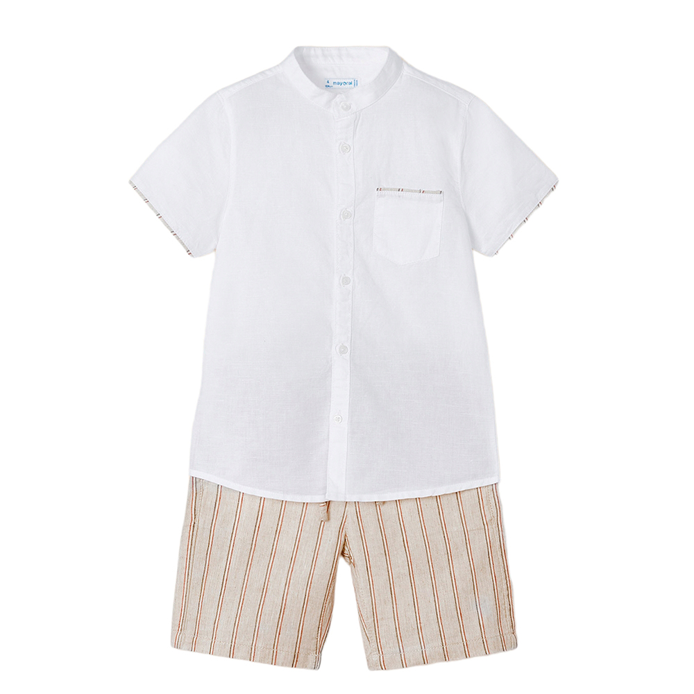 Παιδικό σετ με βερμούδα μακό και μπλούζα με τύπωμα εμπρός και πλάτη, 100% Βαμβάκι