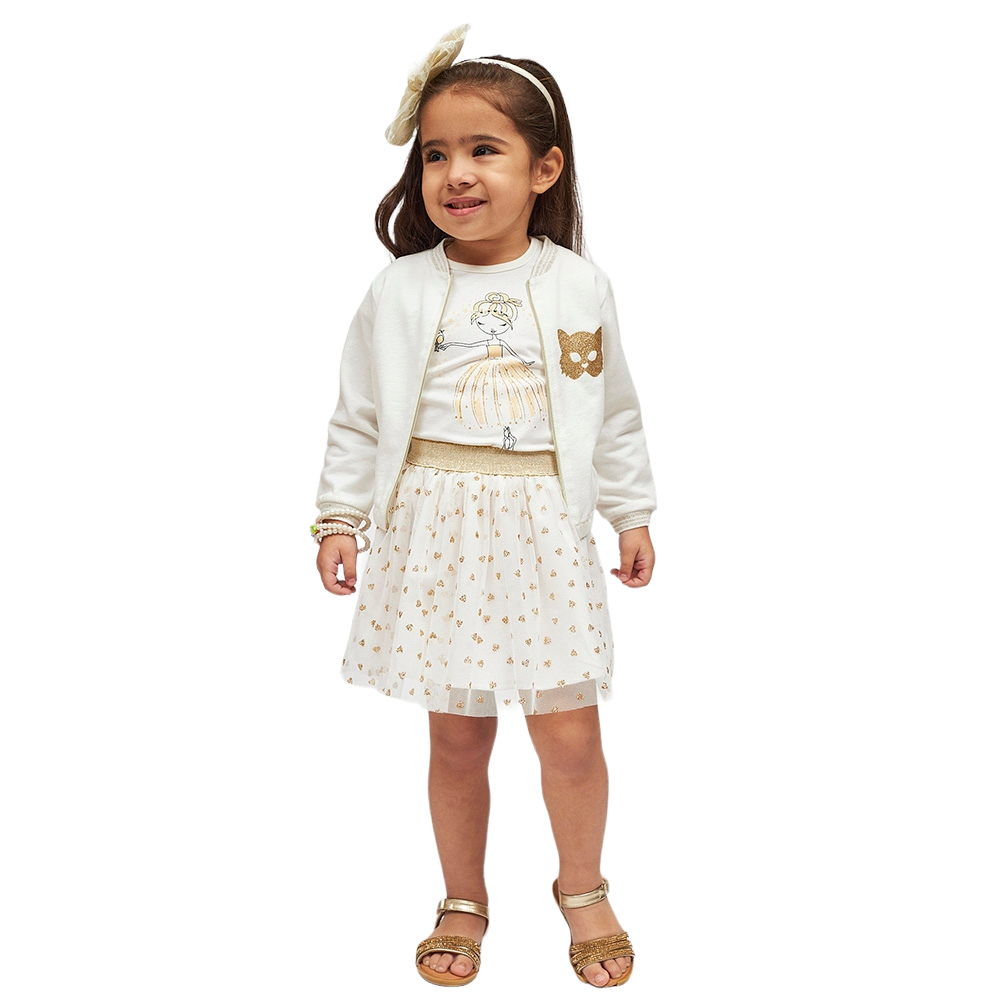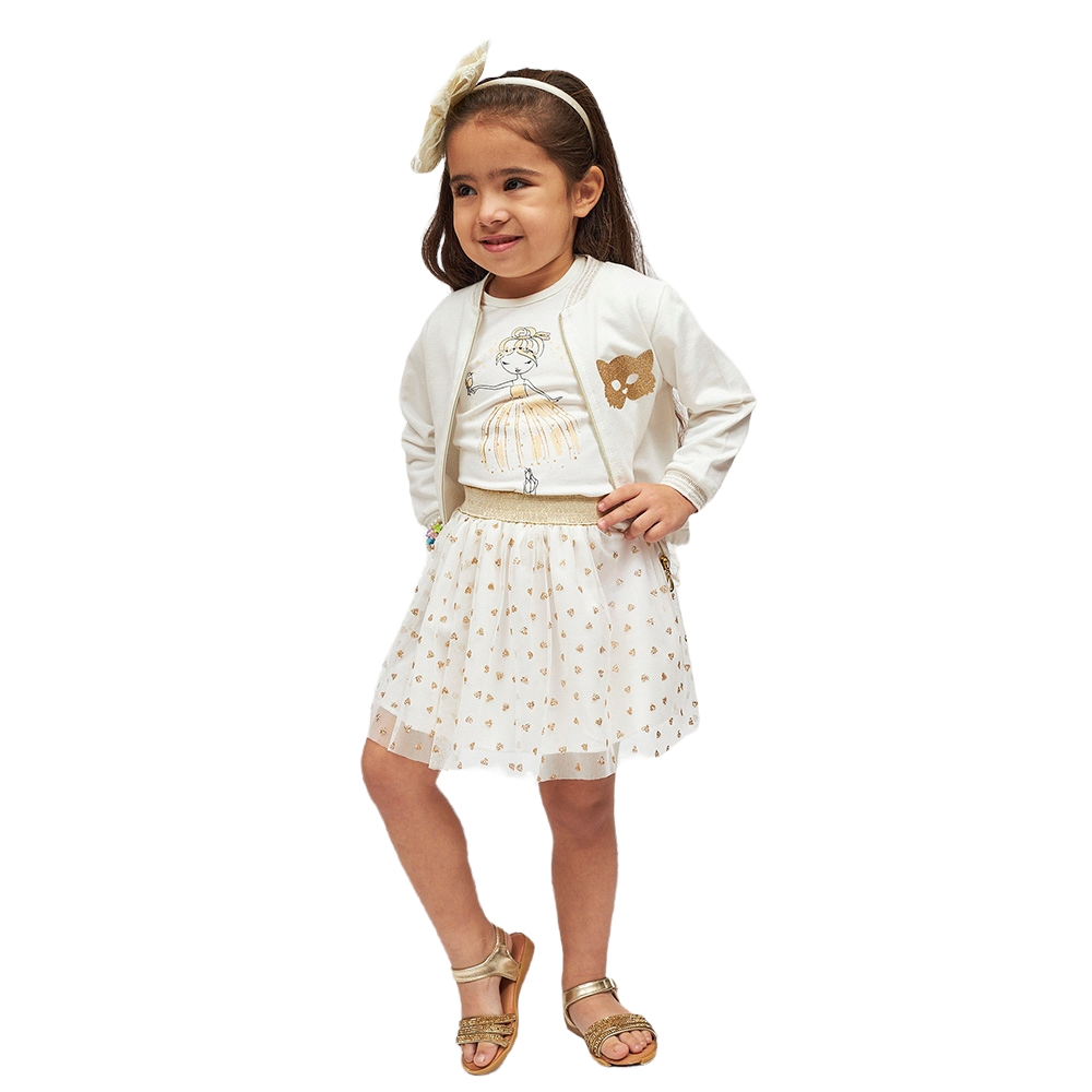 Παιδικό σετ με τούλι και κέντημα και μακρυμάνικο μπλουζάκι, 100% Πολυέστερ