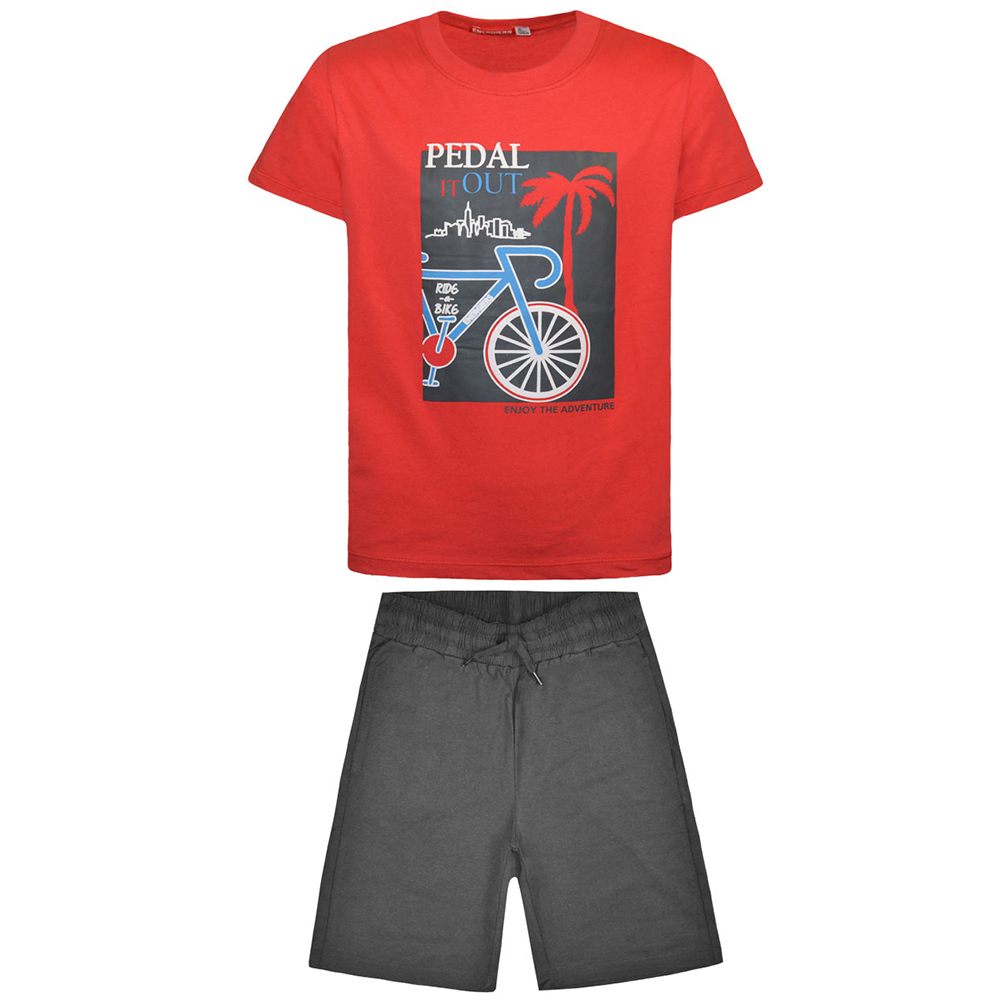 Εφηβικό σετ με μακό βερμούδα και t-shirt με τύπωμα στο μπροστά και το πίσω μέρος, 100% Βαμβάκι