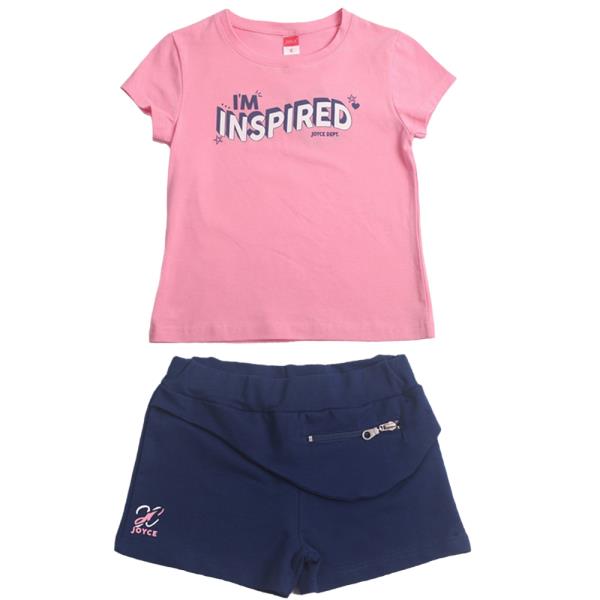 Παιδικό σετ σορτς με ιδιαίτερη τσέπη και μπλουζάκι με τύπωμα, 95% Βαμβάκι, 5% Ελαστάνη