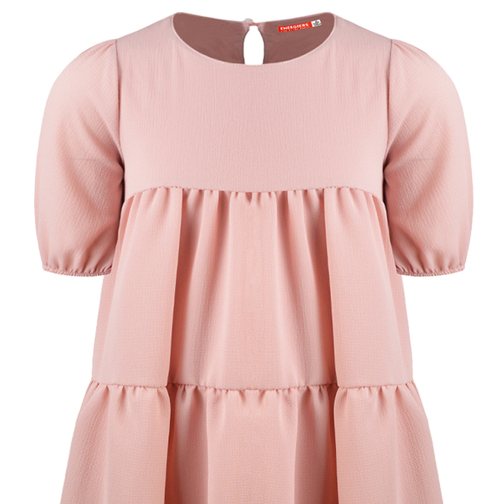 Εφηβικό μακό κοντομάνικο μονόχρωμο φόρεμα με σούρες, 96% Βαμβάκι, 4% Ελαστάνη