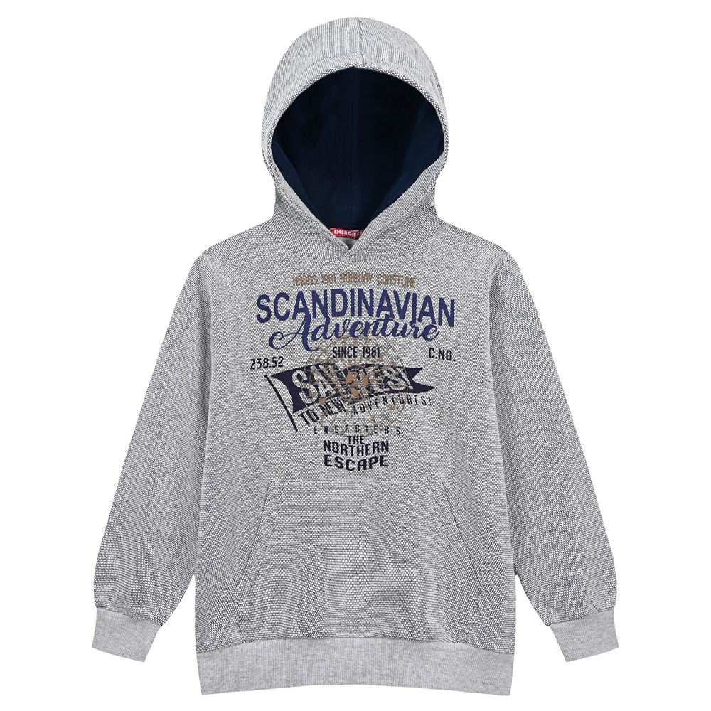 Εφηβικό φούτερ από αχνούδιαστο φούτερ με τύπωμα μπροστά και πίσω, 93% Βαμβάκι, 7% Πολυέστερ