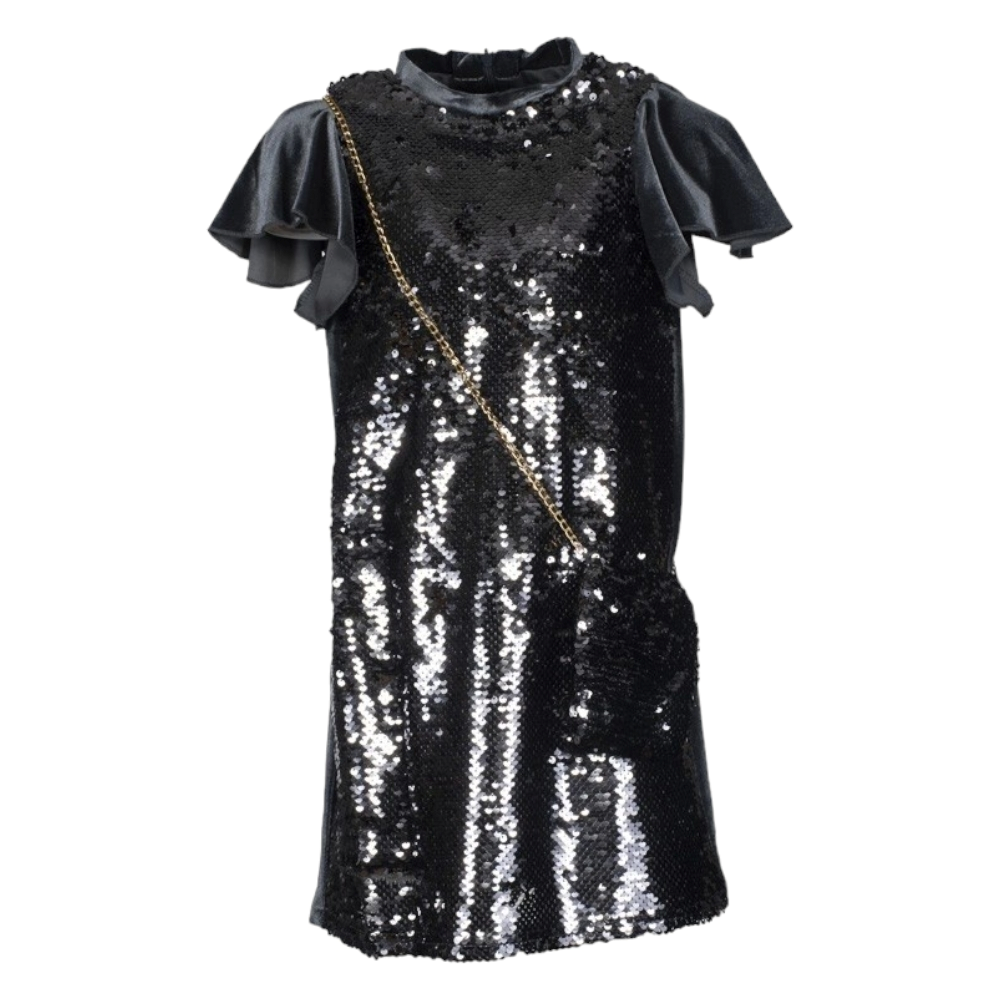 Εφηβικό μεταλιζέ φόρεμα με λάστιχο στα μανίκια, 75% Πολυέστερ, 25% Μεταλλικές Ίνες, 100% Πολυέστερ