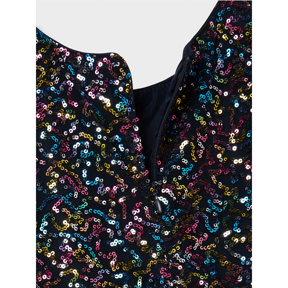 Εφηβικό μεταλιζέ φόρεμα με λάστιχο στα μανίκια, 75% Πολυέστερ, 25% Μεταλλικές Ίνες, 100% Πολυέστερ