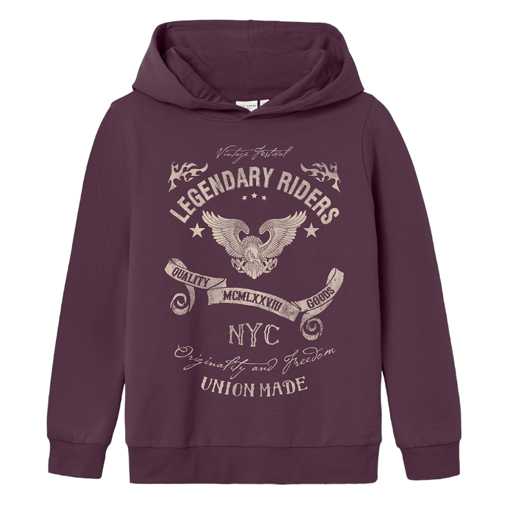 Εφηβικό φούτερ από αχνούδιαστο φούτερ με τύπωμα μπροστά και πίσω, 93% Βαμβάκι, 7% Πολυέστερ