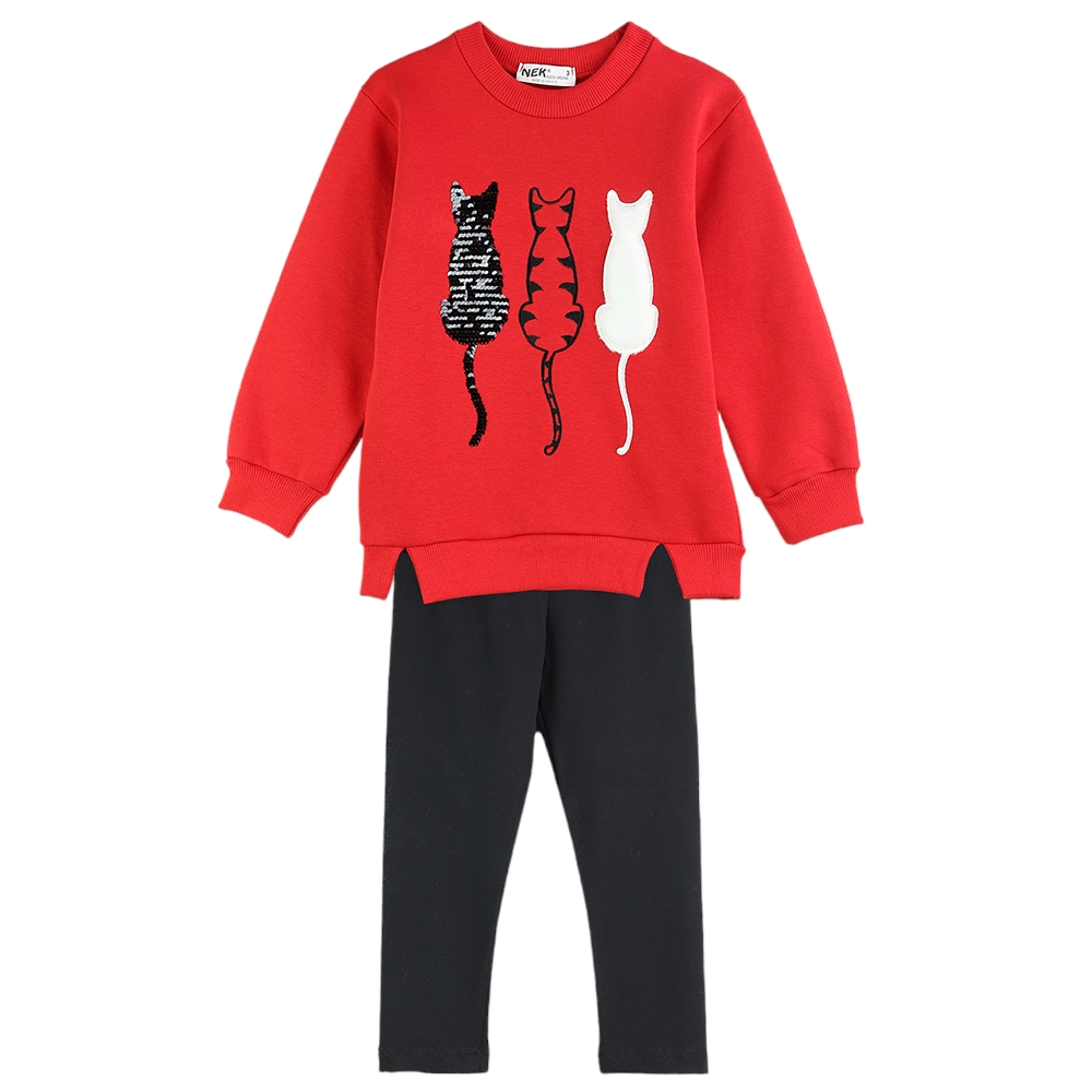 Παιδικό σετ με φούξια κολάν και φούτερ με τύπωμα και παγιέτες, 95% Βαμβάκι, 5% Λύκρα