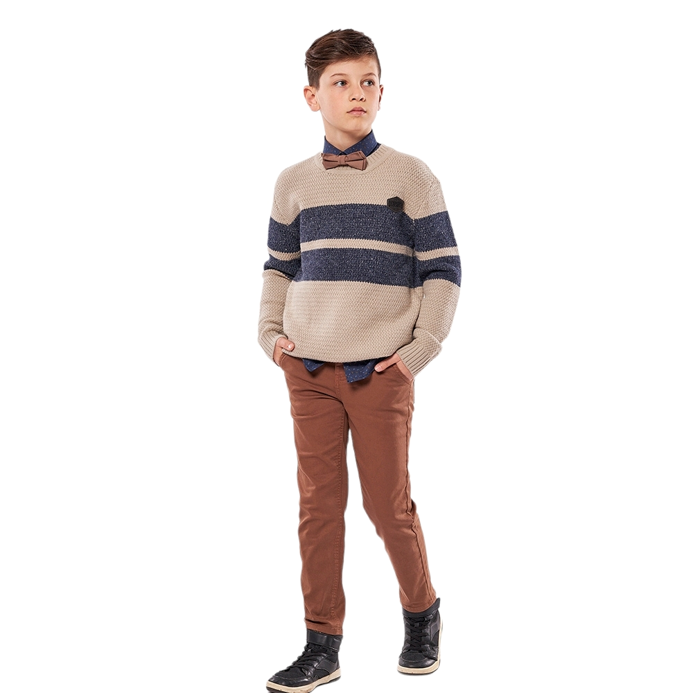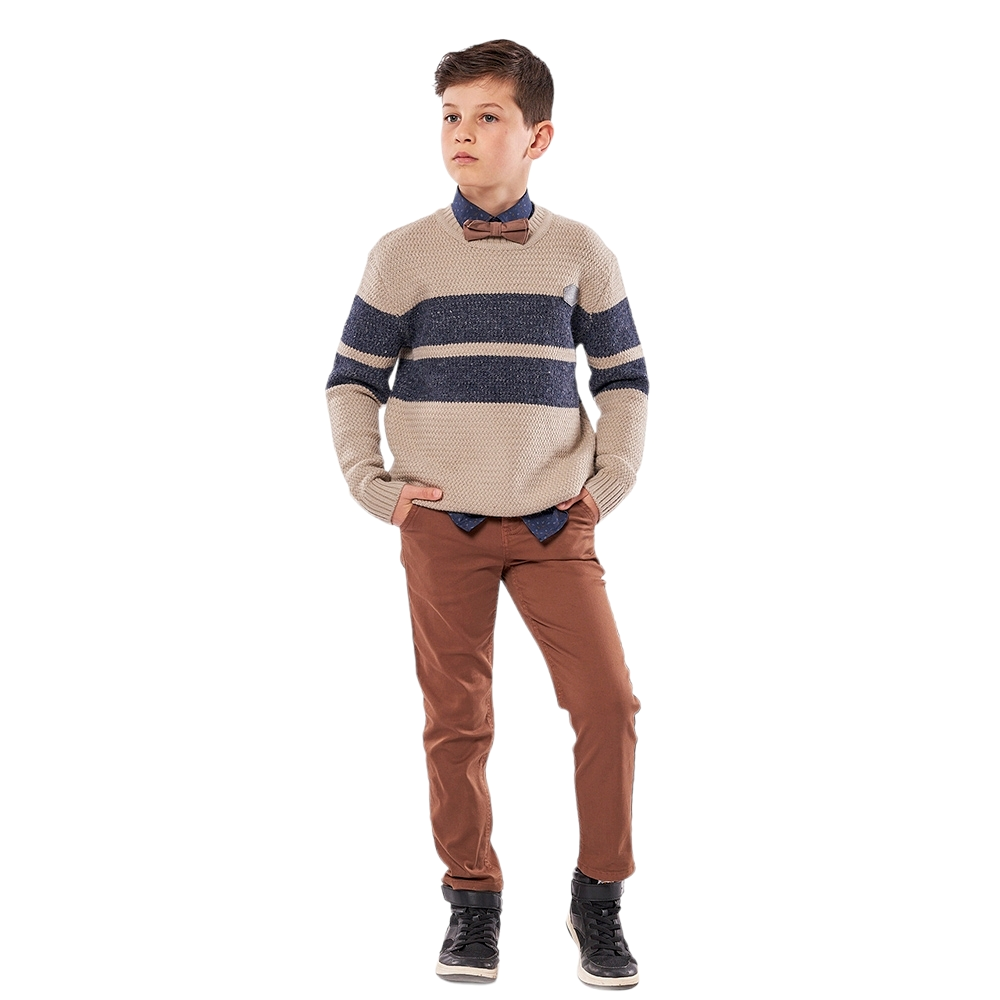Εφηβικό πλεκτό πουλόβερ μονόχρωμο με διακοσμητική τσέπη στο στήθος, 100% Βαμβάκι