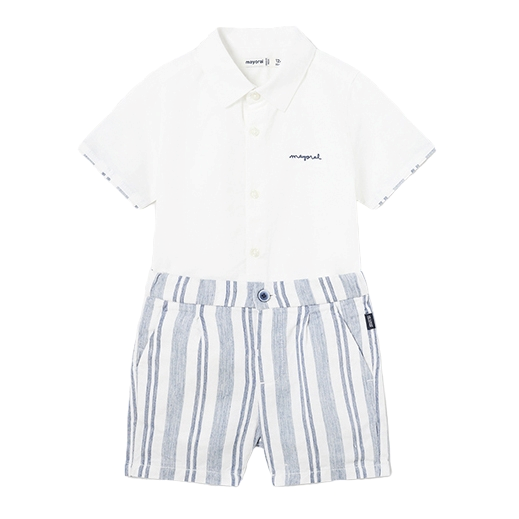 Βρεφικό σετ με βερμούδα, κοντομάνικο πουκάμισο και μαντήλι, 100% Βαμβάκι