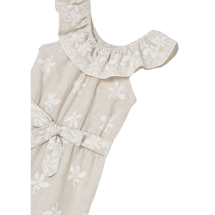 Παιδικό ολόσωμο σορτς με βολάν και εμπριμέ υφασμάτινη ζώνη, 100% Βαμβάκι