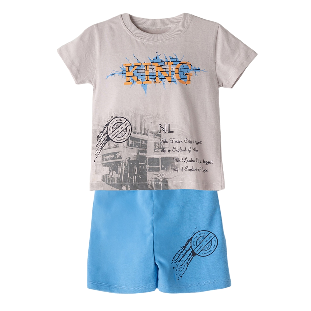 Παιδικό σετ με βερμούδα σταμπωτή και μπλούζα με τύπωμα, 100% Βαμβάκι