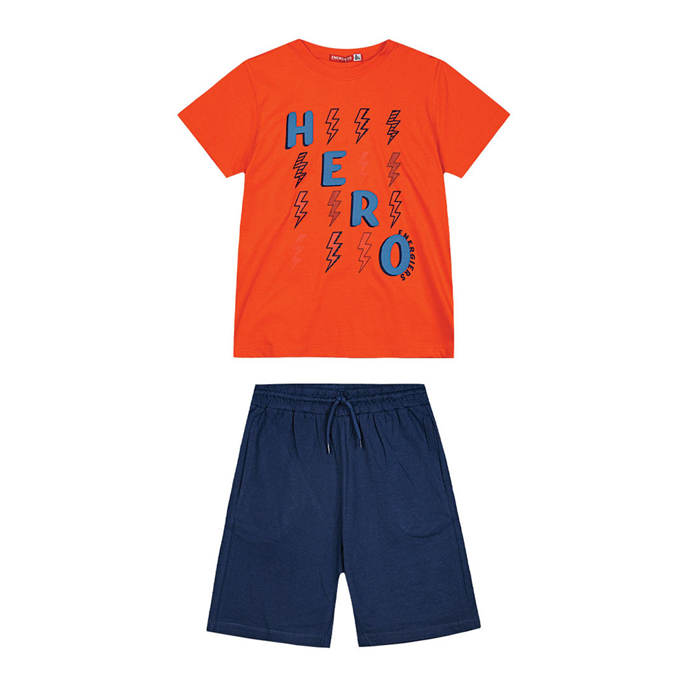 Εφηβικό σετ με μακό βερμούδα και t-shirt με τύπωμα, 100% Bαμβάκι