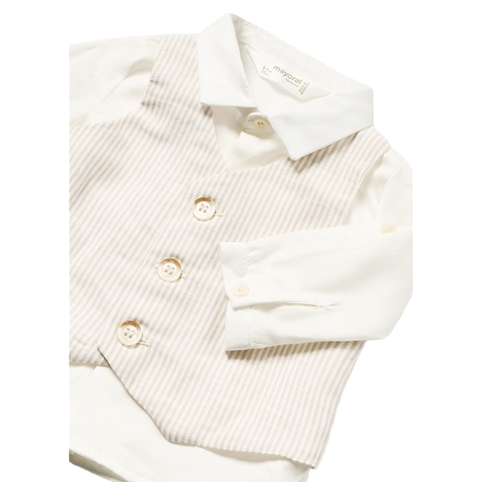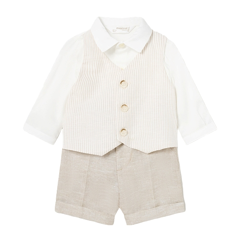 Βρεφικό σετ με cargo παντελόνι, κοντομάνικο πουκάμισο με παπιγιόν και γιλέκο, 100% Βαμβάκι