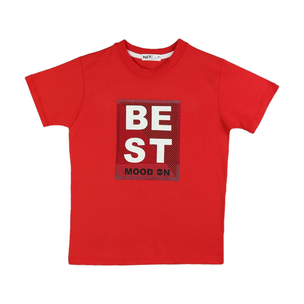 Εφηβικό σετ με τύπωμα Now or Never. Η βερμούδα έχει τσέπες και στο πλάι έχει ύφασμα στο χρώμα της μπλούζας, 100% Βαμβάκι
