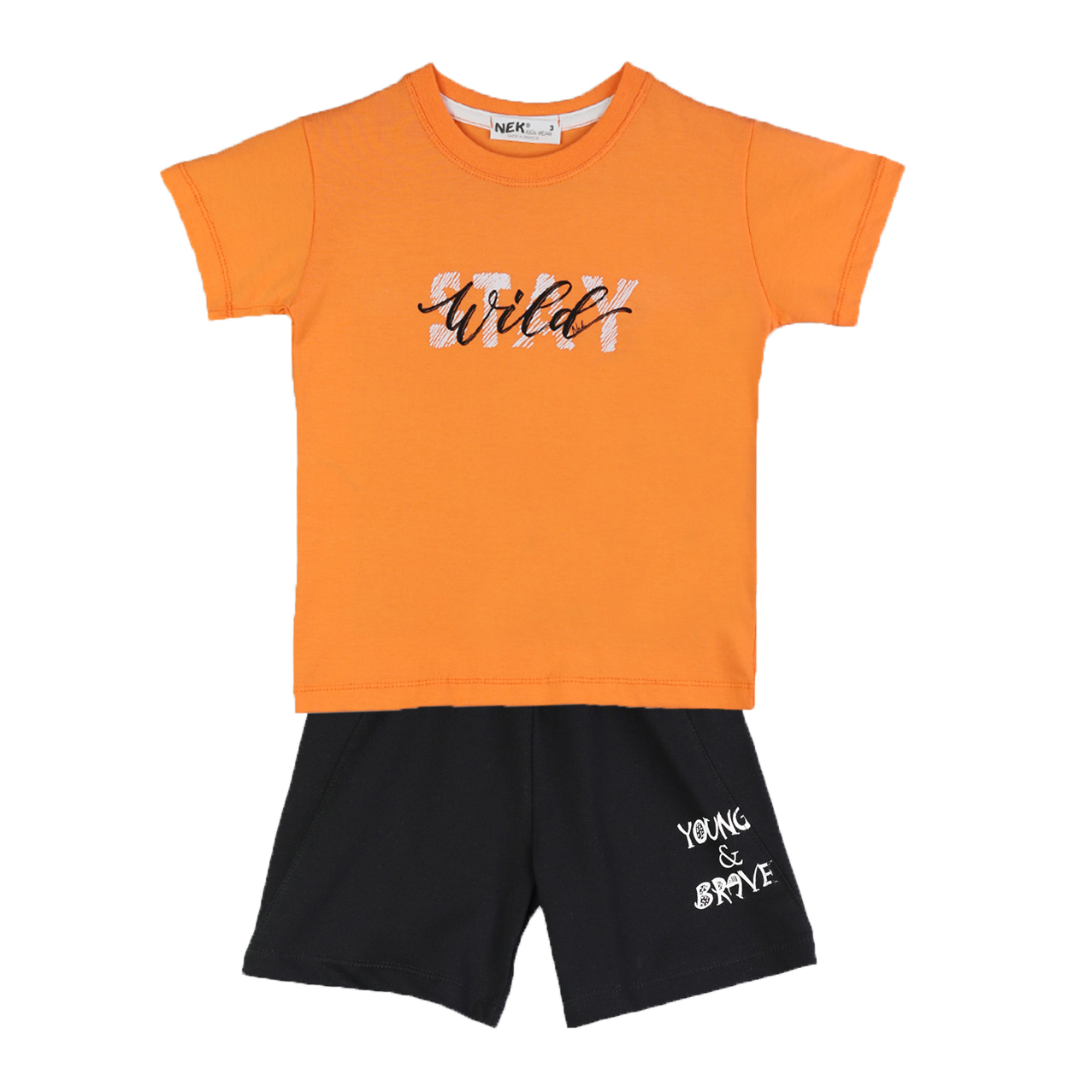 Παιδικό σετ με σταθερή βερμούδα και μπλουζάκι με τύπωμα, 100% Βαμβάκι