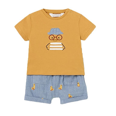 Βρεφικό σετ με εμπριμέ σορτσάκι και κοντομάνικο μπλουζάκι με τύπωμα, 95% Βαμβάκι, 5% Ελαστάνη