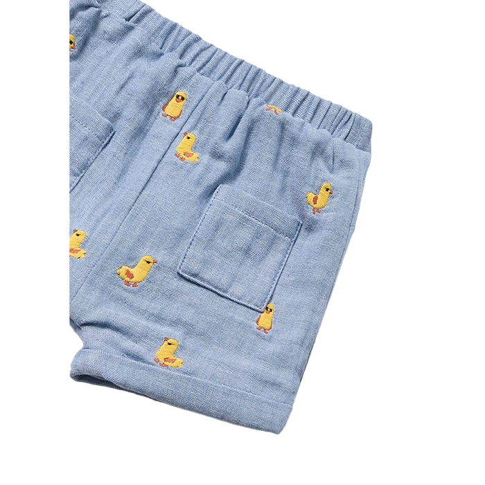 Βρεφικό σετ με σορτσάκι denim με λάστιχο και κοντομάνικο μπλουζάκι με τύπωμα, 95% Βαμβάκι, 5% Ελαστάνη, 68% Βαμβάκι, 31% Πολυέστερ, 1% Ελαστάνη