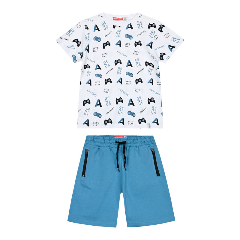 Παιδικό σετ με βερμούδα μακό και μπλούζα με τύπωμα εμπρός και πλάτη, 100% Βαμβάκι