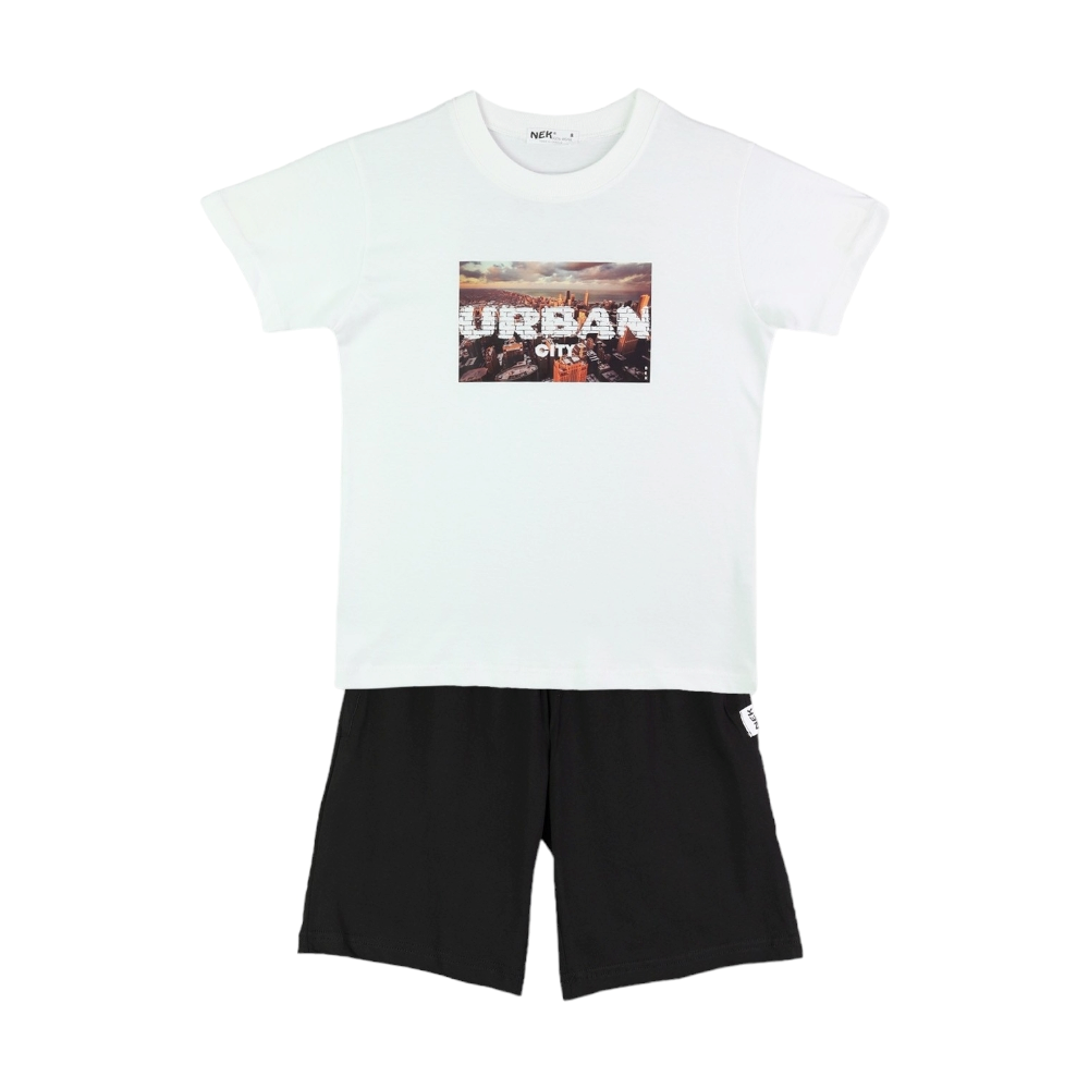 Εφηβικό σετ βερμούδα μακό και μπλουζάκι με τύπωμα, 100% Βαμβάκι