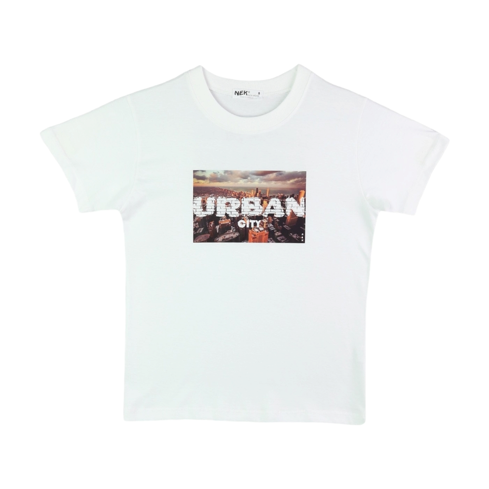 Εφηβικό σετ με βερμούδα και κοντομάνικο μπλουζάκι με τύπωμα στο στήθος και την πλάτη, 100% Βαμβάκι