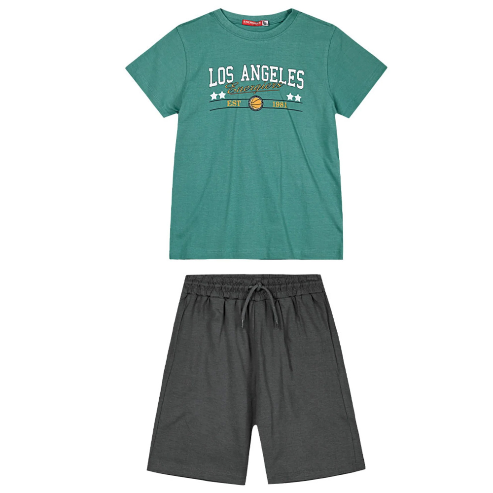 Εφηβικό σετ βερμούδα μακό και μπλουζάκι με τύπωμα, 100% Βαμβάκι