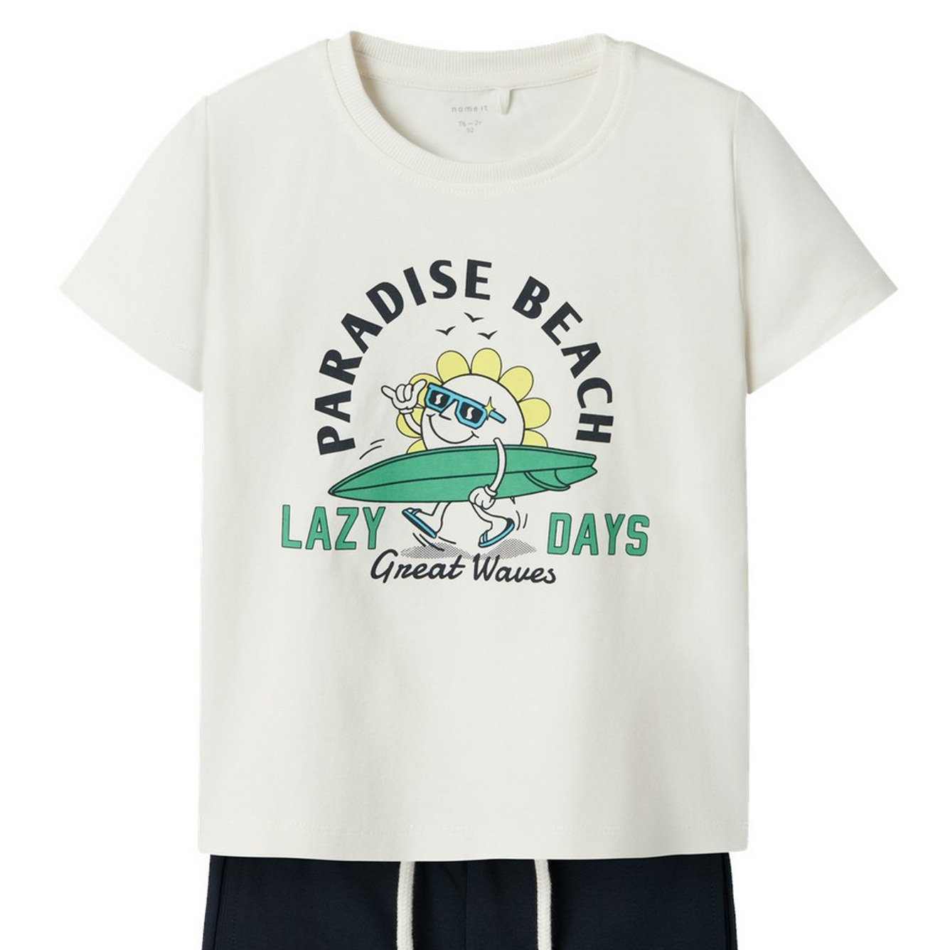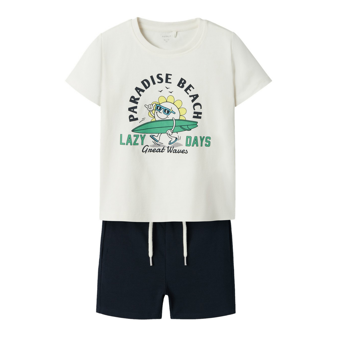 Παιδικό σετ με σταθερή βερμούδα και μπλουζάκι με τύπωμα, 100% Βαμβάκι
