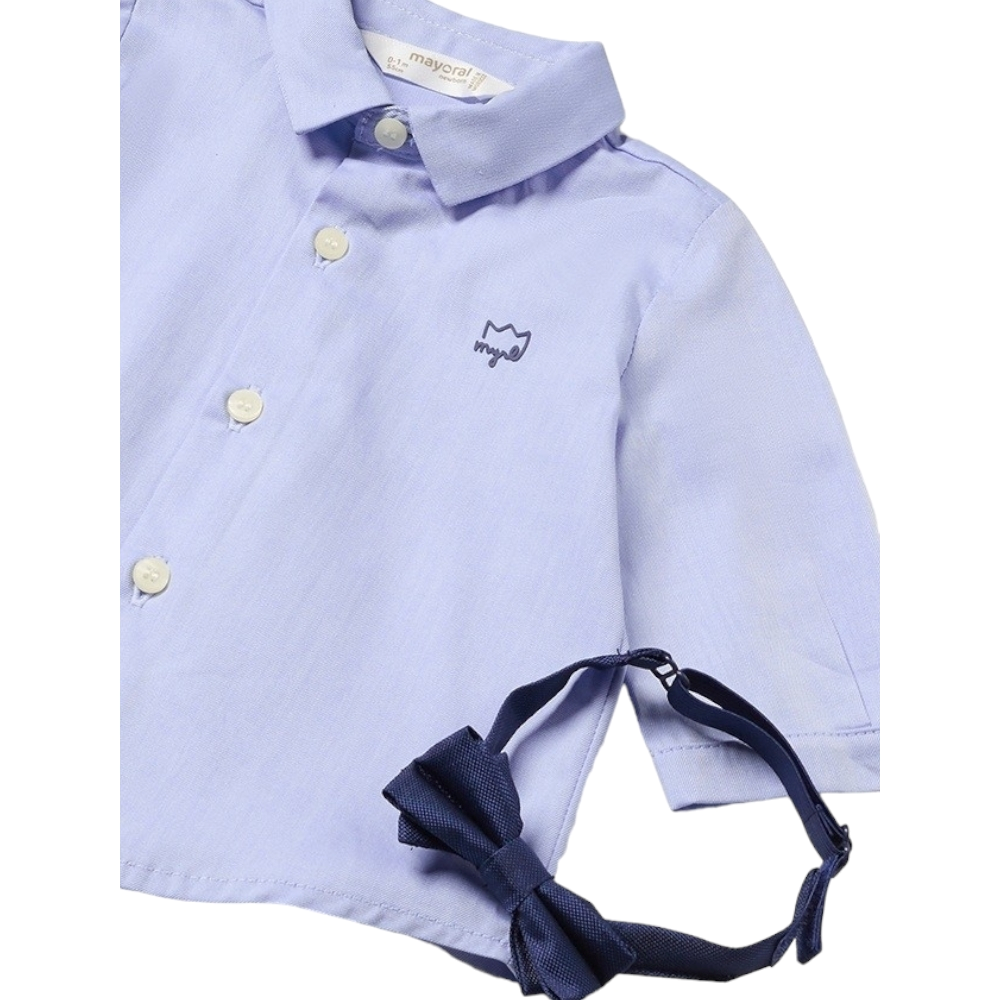 Το βρεφικό πουκάμισο της Mayoral είναι σχεδιασμένο σε γαλάζια απόχρωση, κατασκευασμένο από υψηλής ποιότητας ύφασμα για άνετη και ευχάριστη αίσθηση. Το κόψιμο του είναι κλασικό και διακριτικό και έχει συνδυαστεί με παπιγιόν. Ιδανικό για να ντύσει με στυλ και άνεση το μικρό αγόρι σας.