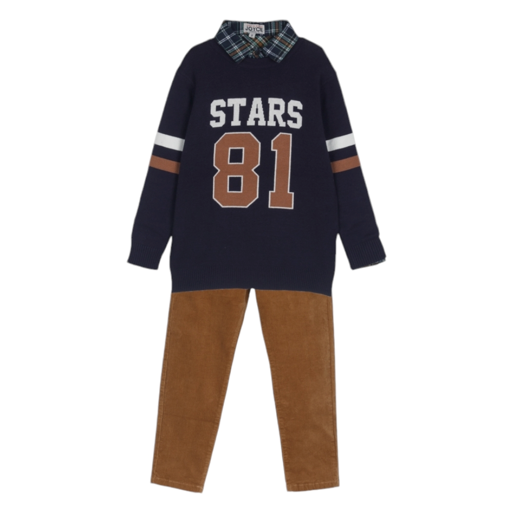 Εφηβικό σετ με μακρυμάνικο πουκάμισο, ριγέ γιλέκο και παντελόνι, 100% Βαμβάκι, 50% Βαμβάκι, 50% Πολυέστερ