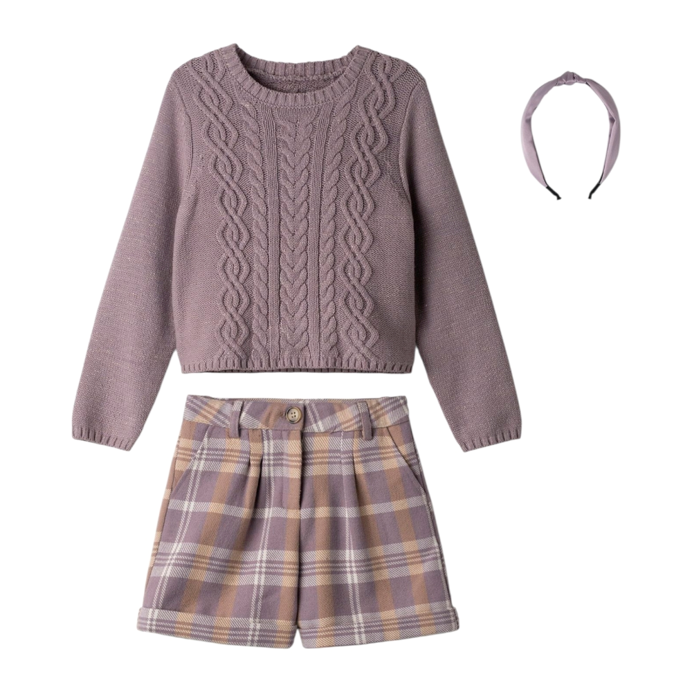 Εφηβικό σετ σορτς εμπριμέ και μπλουζάκι με μεγάλο διακοσμητικό φιόγκο, 65% Πολυέστερ, 35% Βαμβάκι
