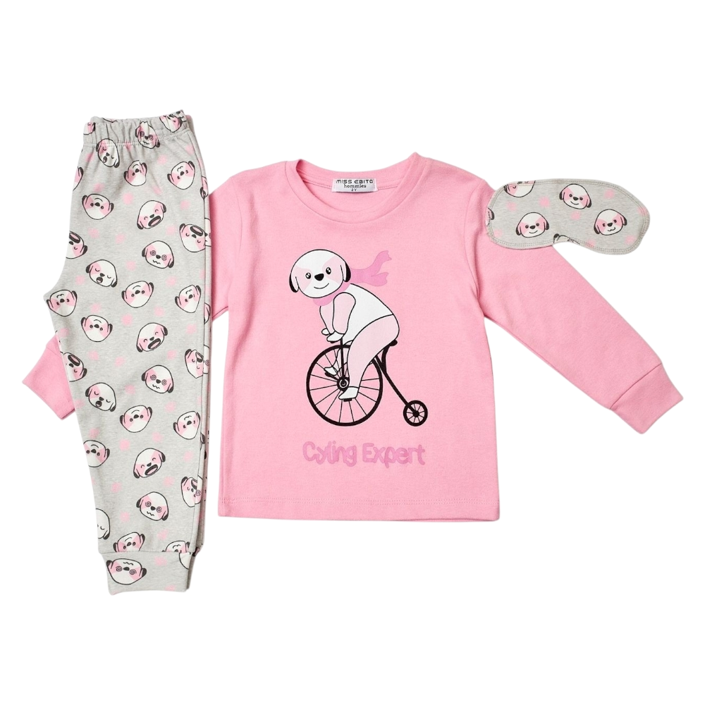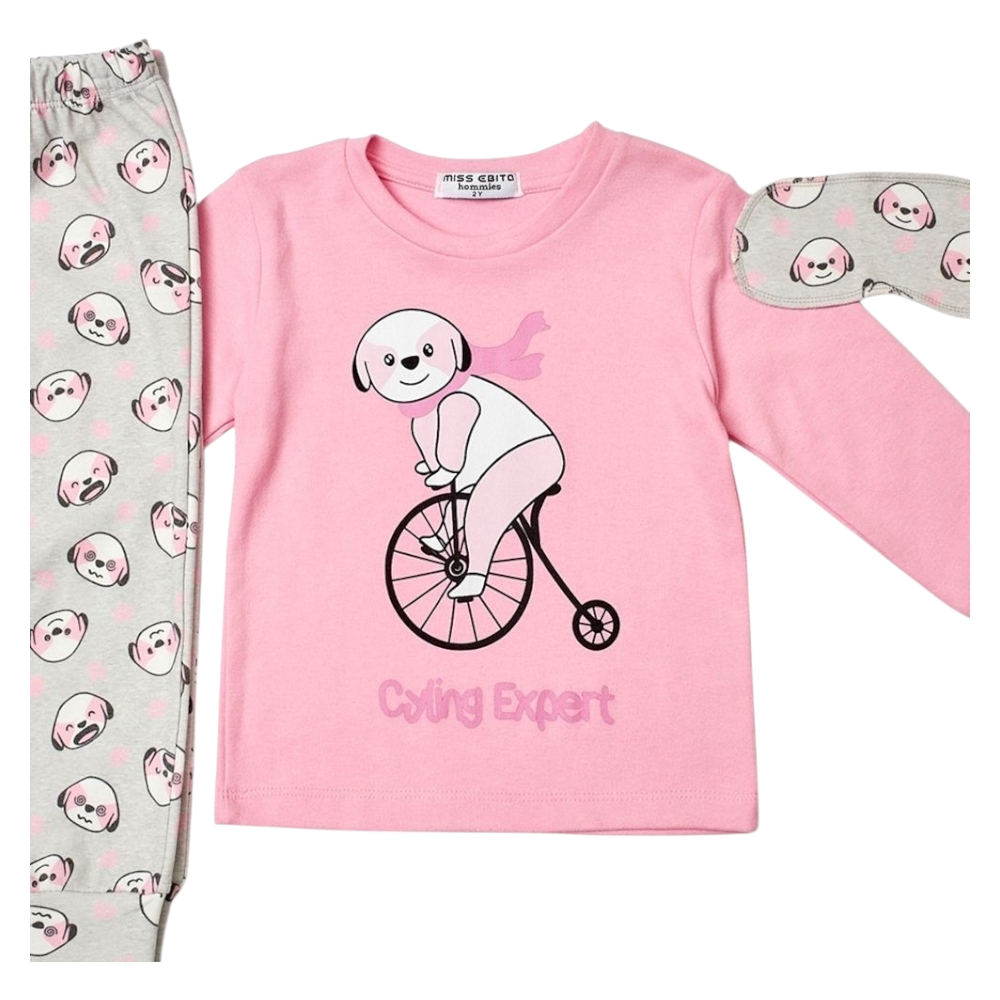 Παιδική πυτζάμα με τύπωμα "sleep time" και μάσκα ύπνου, 100% Βαμβάκι