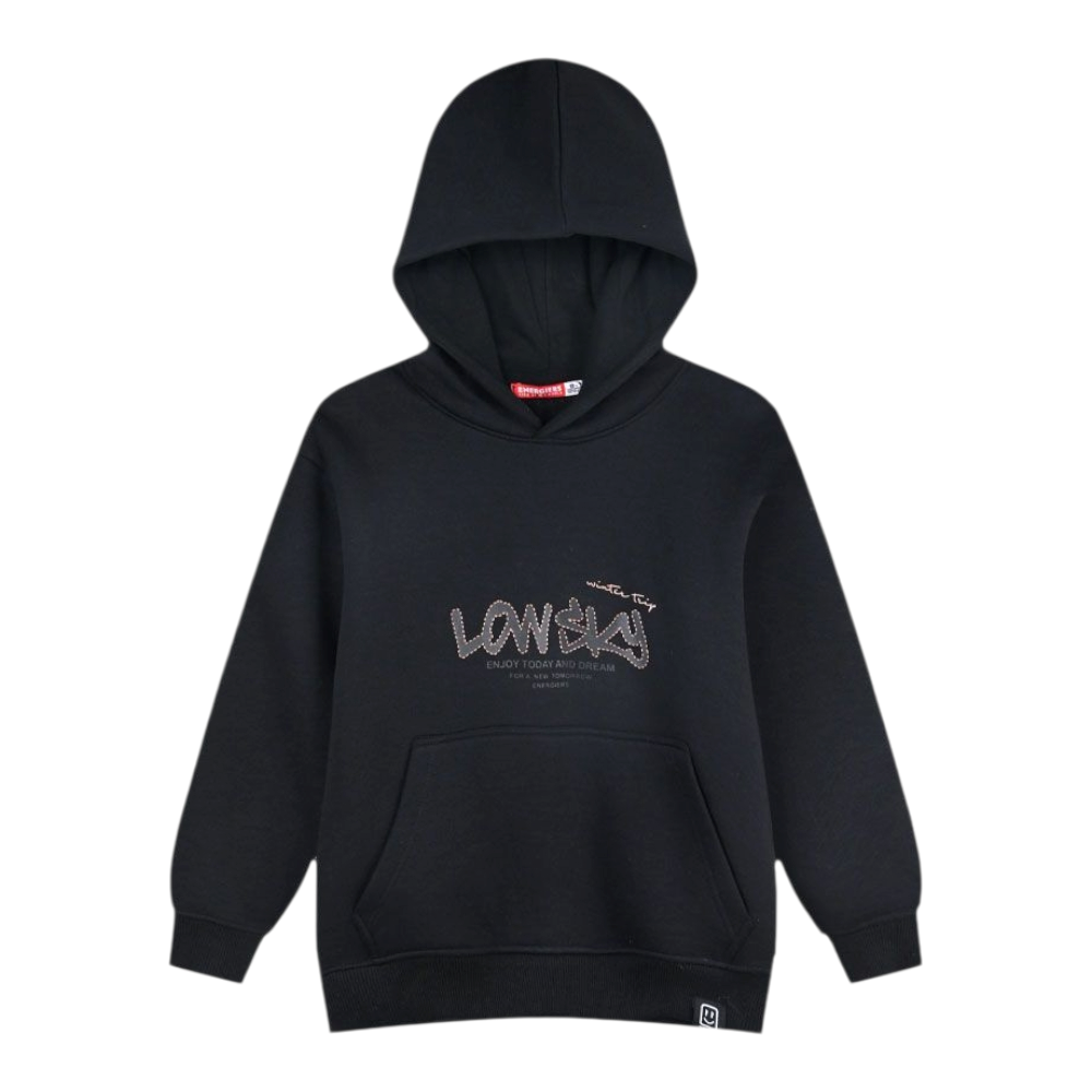 Εφηβικό φούτερ από αχνούδιαστο φούτερ με τύπωμα μπροστά και πίσω, 93% Βαμβάκι, 7% Πολυέστερ