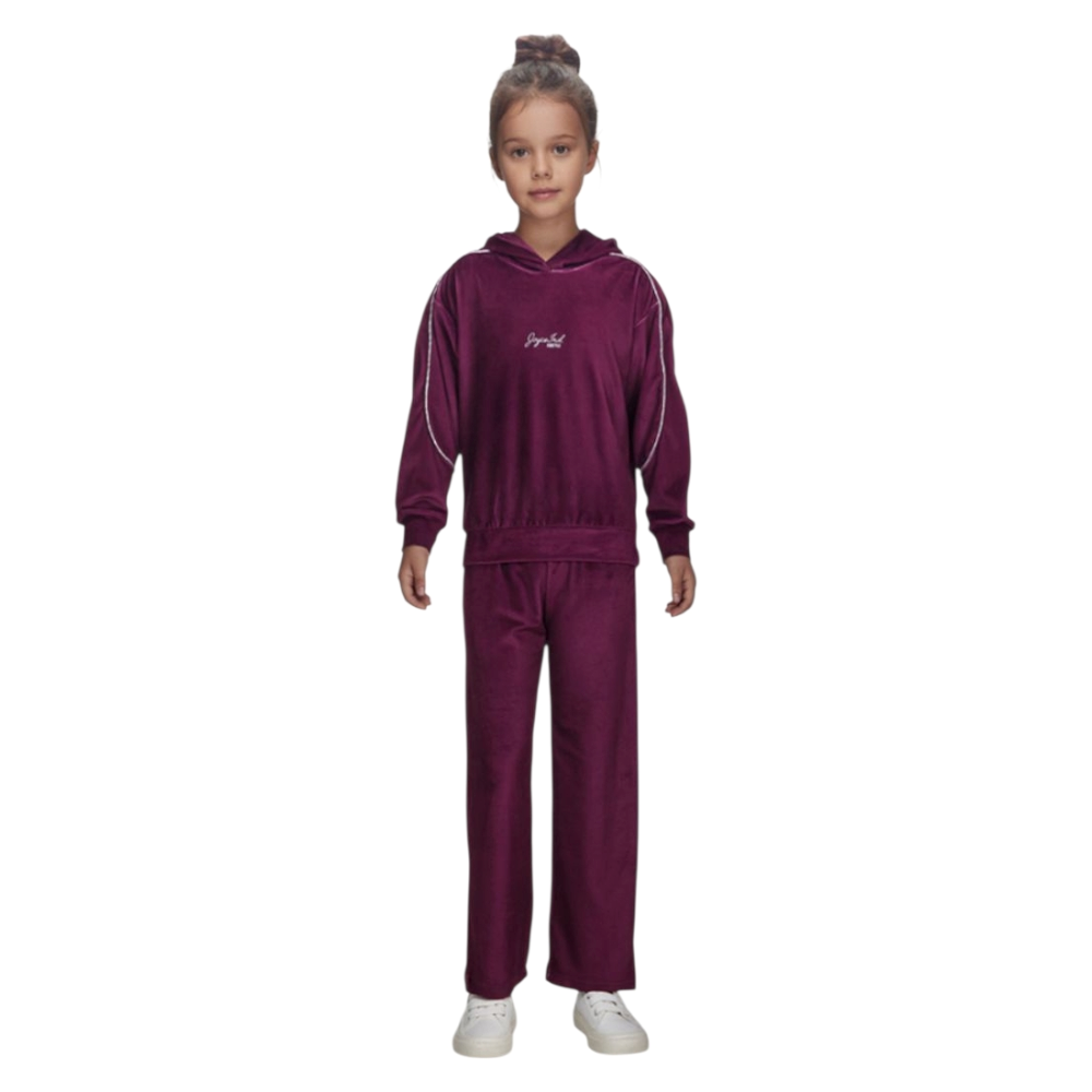 Εφηβική βελουτέ φόρμα σετ με ιδιαίτερες πινελιές στο φούτερ, 94% Πολυέστερ, 6% Ελαστάνη