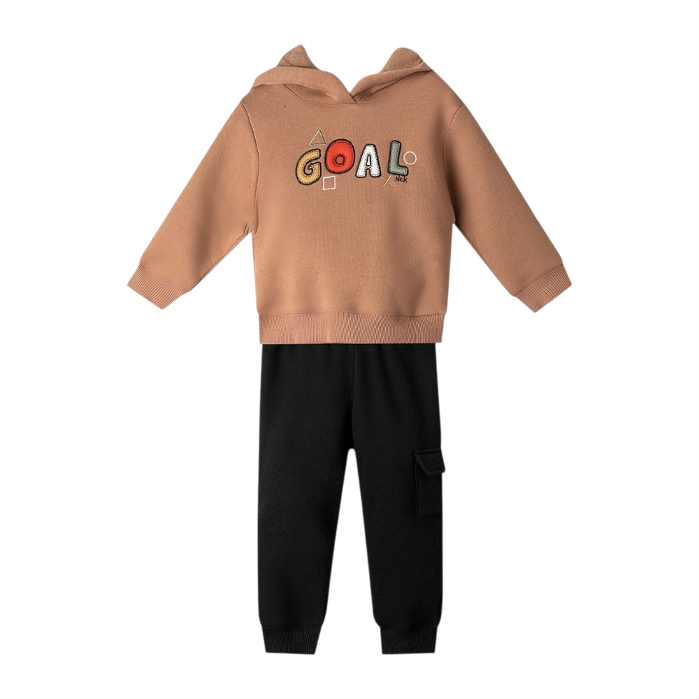 Παιδική φόρμα σετ, φούτερ με κουκούλα και τύπωμα "strong vibes", 80% Βαμβάκι, 20% Πολυέστερ
