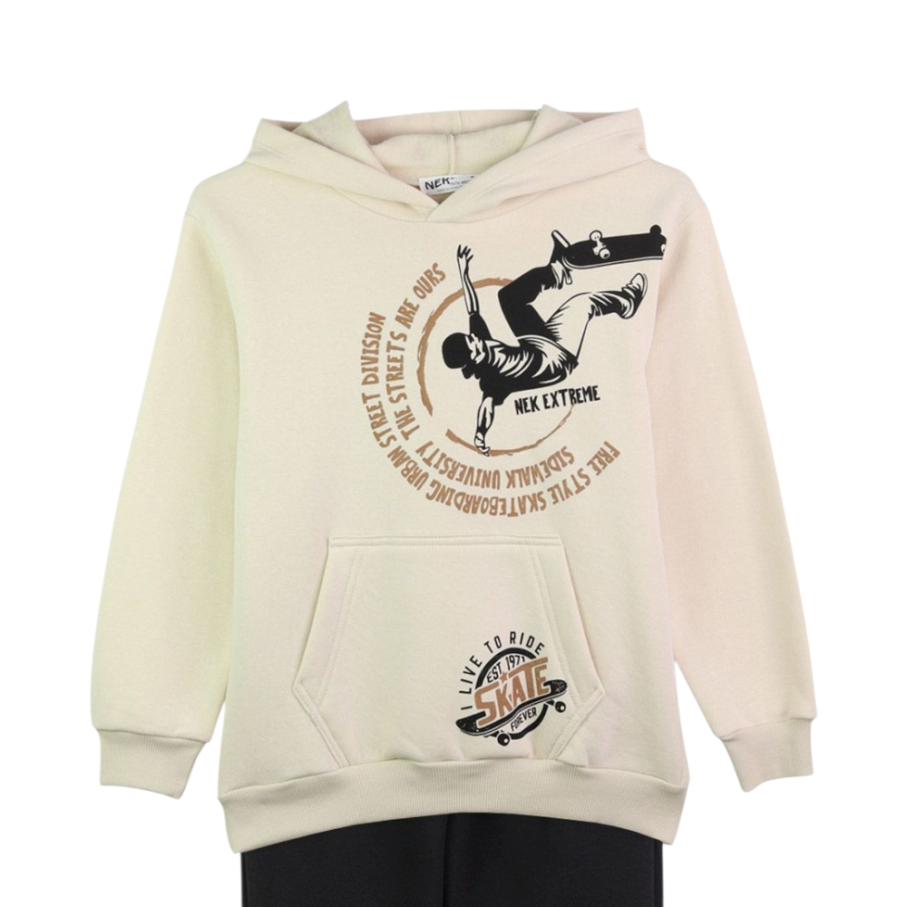 Εφηβική φόρμα σετ, φούτερ με τύπωμα και κουκούλα, 80% Βαμβάκι, 20% Πολυέστερ