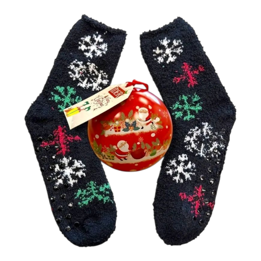 Το παιδικό σετ δώρου Χριστουγεννιάτικες κάλτσες Ider 2519252 Black SnowFlake περιλαμβάνει ένα ζευγάρι χριστουγεννιάτικες αντιολισθητικές κάλτσες μέσα σε χριστουγεννιάτικη μπάλα. Είναι κατασκευασμένες από υψηλής ποιότητας ύφασμα που προσφέρει άνεση και ζεστασιά στα παιδιά. Ιδανικές για δώρο στις γιορτές των Χριστουγέννων.