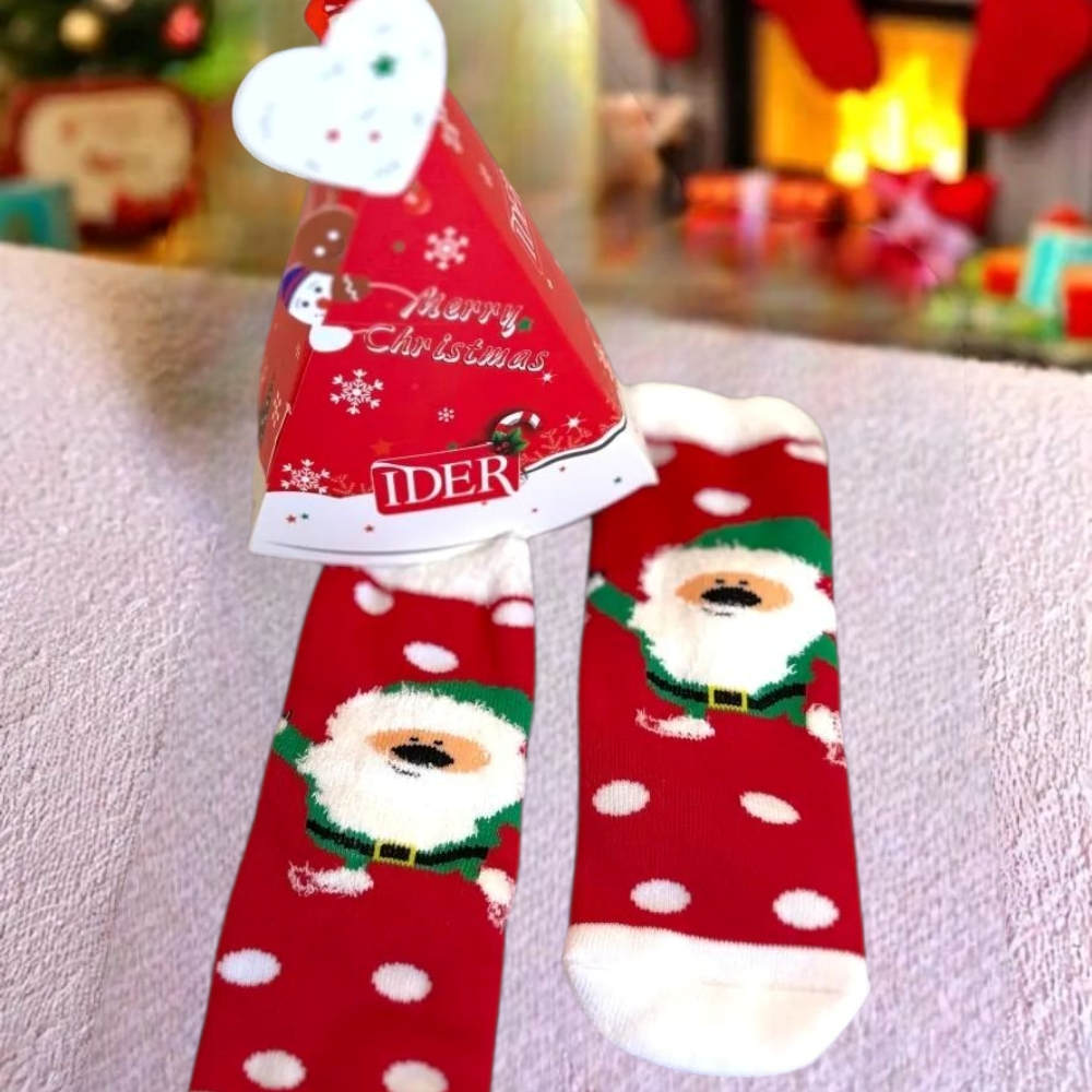 Το παιδικό σετ δώρου περιλαμβάνει δύο ζευγάρια χριστουγεννιάτικες κάλτσες σε μαύρο και πράσινο χρώμα με αντιολησθητική πατούσα σε μεταλλικό κουτί σε σχήμα Άγιο Βασίλη. Το σετ είναι ιδανικό για να δώσει μια γιορτινή νότα στην εμφάνιση του παιδιού σας και να το κρατήσει ζεστό και άνετο κατά τη διάρκεια των χειμερινών μηνών.