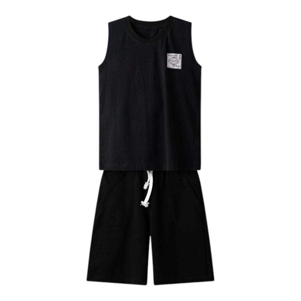 Εφηβικό σετ, αμάνικη μπλούζα με τύπωμα. Η βερμούδα έχει τύπωμα στο ένα μπατζάκι, πλαινές τσέπες και επιπλέον ύφασμα δίχτυ στο πλάι, 100% Πολυέστερ