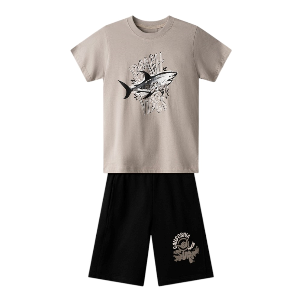 Εφηβικό σετ με μακό βερμούδα και t-shirt με τύπωμα, 100% Bαμβάκι