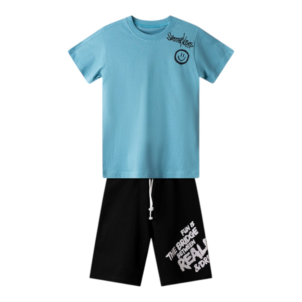 Εφηβικό σετ με βερμούδα και κοντομάνικο μπλουζάκι με τύπωμα, 100% Βαμβάκι