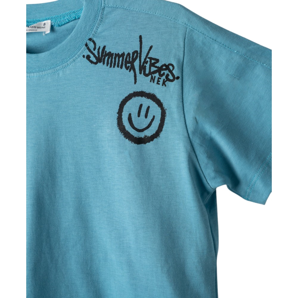 Εφηβικό σετ με μακό βερμούδα και κοντομάνικο μπλουζάκι με τύπωμα, 100% Βαμβάκι