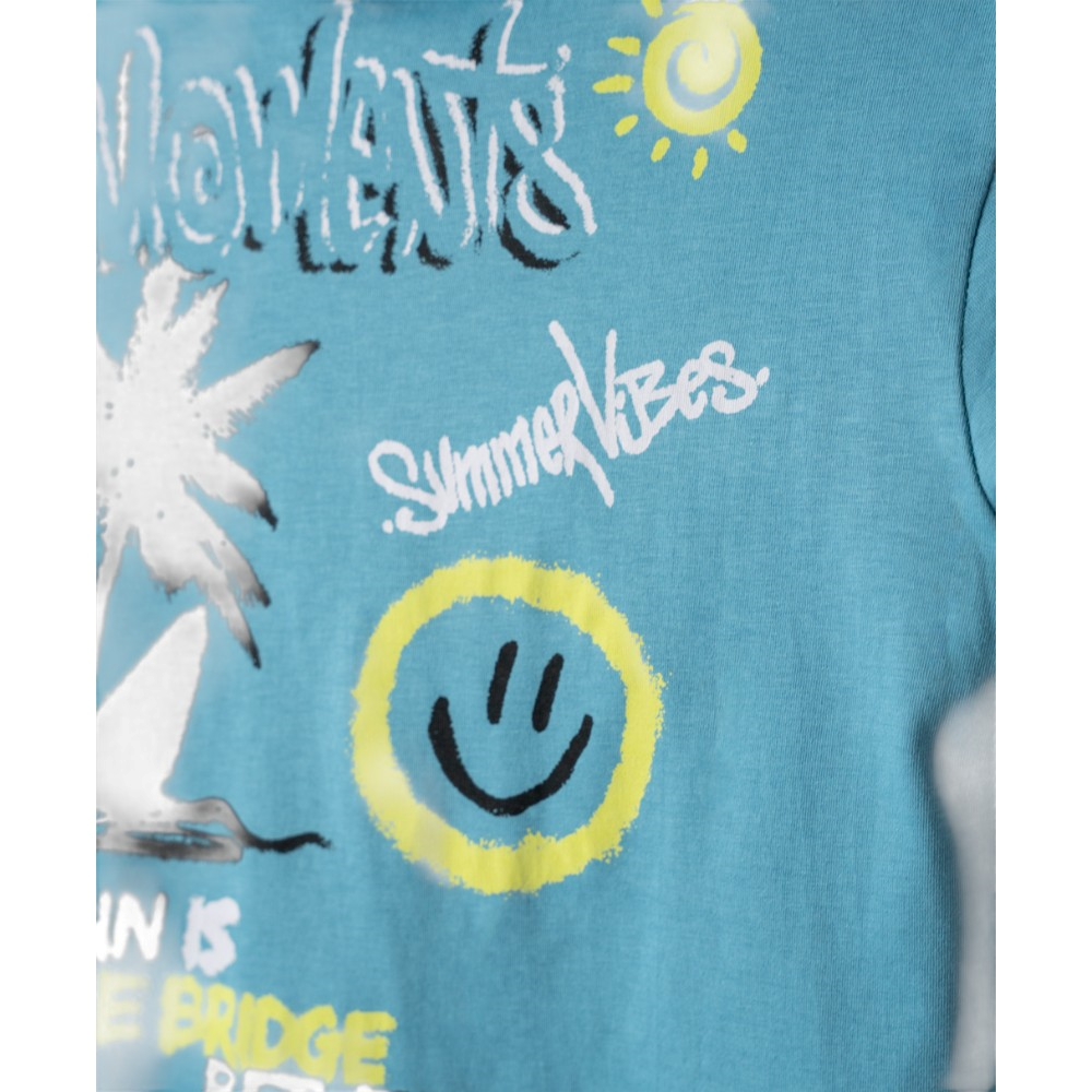 Εφηβικό σετ με βερμούδα μακό και κοντομάνικο μπλουζάκι με τύπωμα, 100% Βαμβάκι
