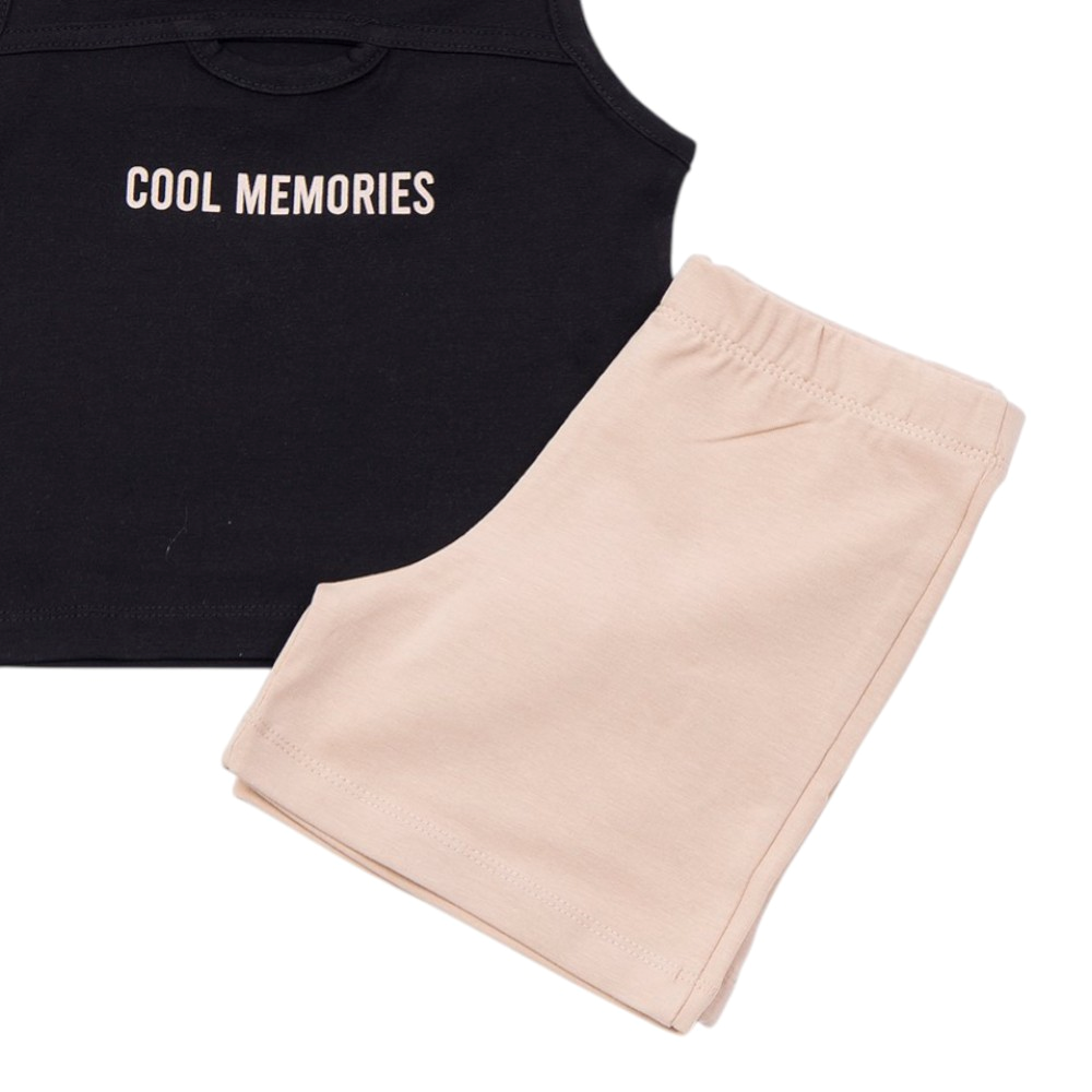 Εφηβικό σετ μπλουζάκι αμάνικο τύπωμα Bye Bye και ποδηλατικό μονόχρωμο μακό κολάν, 95% Βαμβάκι, 5% Ελαστάνη, 100% Βαμβάκι