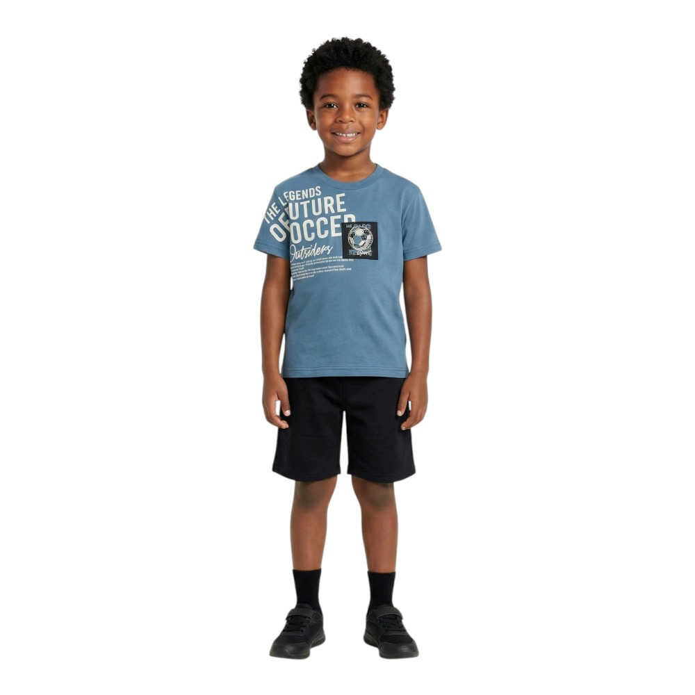 Εφηβικό σετ με μακό βερμούδα και κοντομάνικο μπλουζάκι με τύπωμα, 100% Βαμβάκι