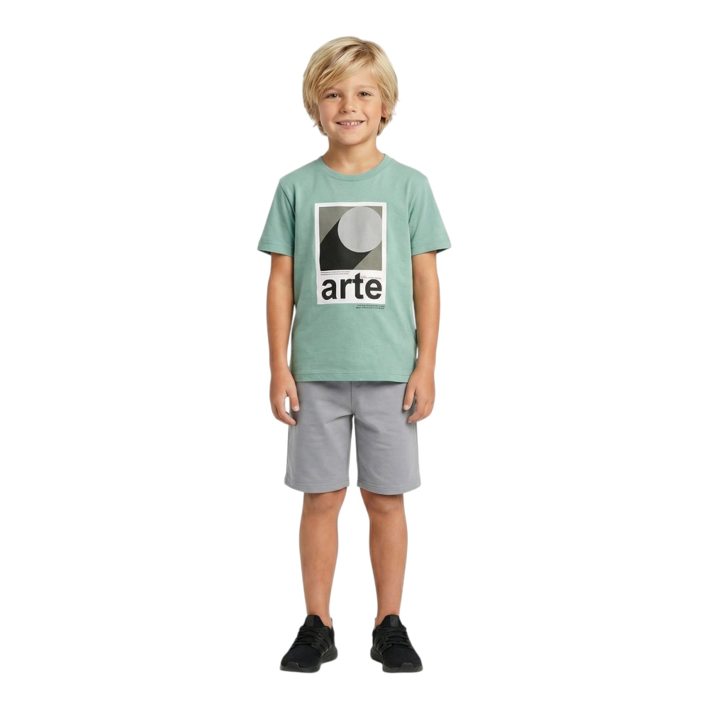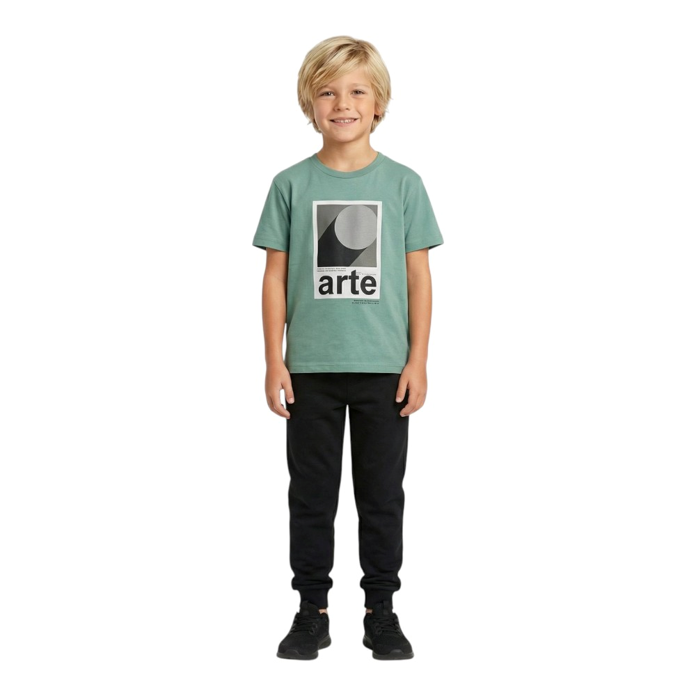 Εφηβικό σετ με παντελόνι φόρμας αχνούδιαστο και κοντομάνικο μπλουζάκι με τύπωμα, 100% Βαμβάκι.