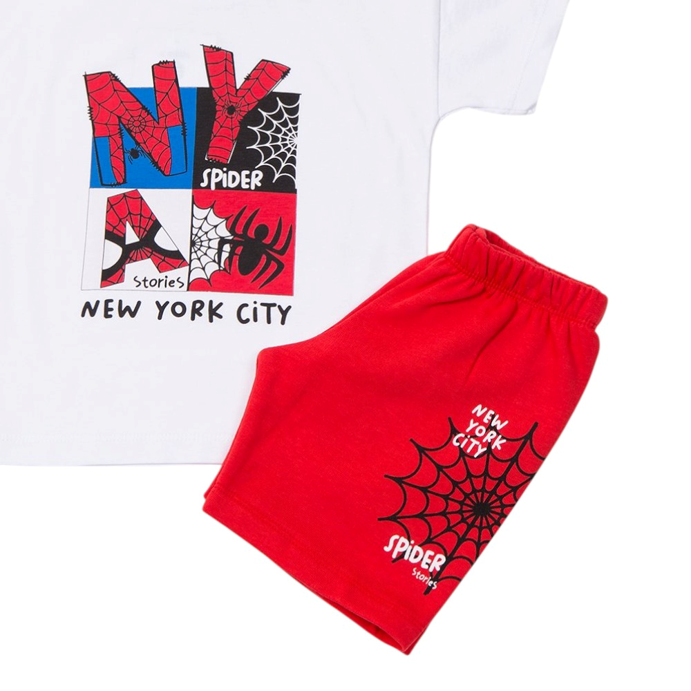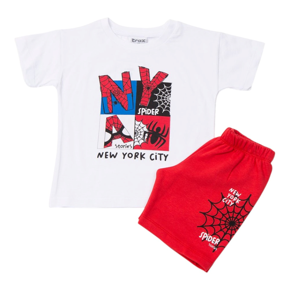 Παιδικό σετ με σταθερή βερμούδα και μπλουζάκι με τύπωμα, 100% Βαμβάκι