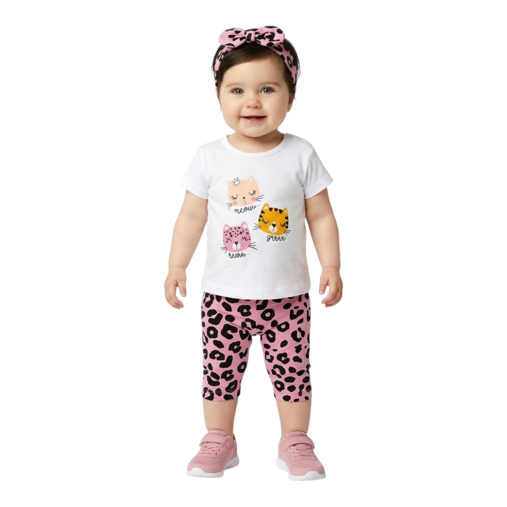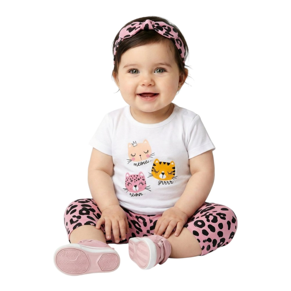 Βρεφικό σετ με κάπρι κολάν, κοντομάνικο μπλουζάκι και κορδέλα για τα μαλλιά, 95% Βαμβάκι, 5% Ελαστάνη