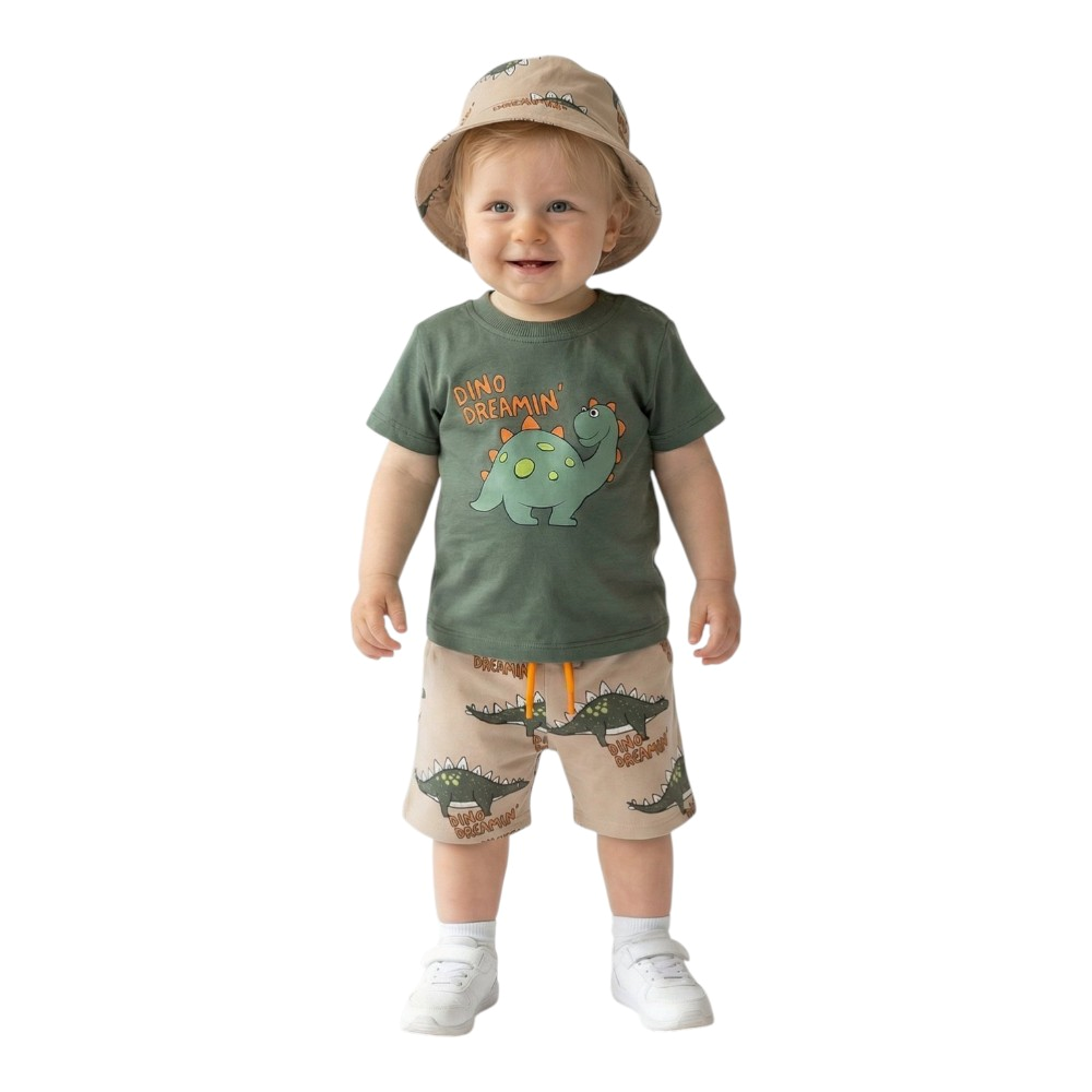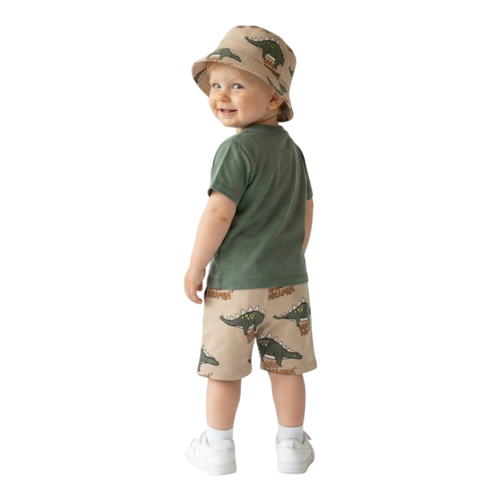 Βρεφικό σετ βερμούδα, κοντομάνικο μπλουζάκι με τύπωμα και καπέλο, 65% Πολυέστερ, 30% Βαμβάκι, 5% Σπάντεξ