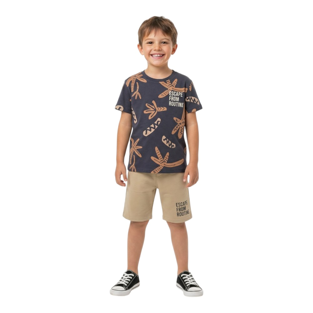 Παιδικό σετ με βερμούδα μακό και κοντομάνικο μπλουζάκι με τύπωμα, 100% Βαμβάκι