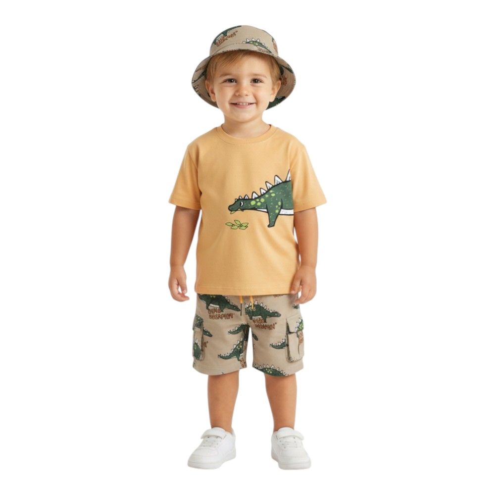 Παιδικό σετ 3 τεμαχίων με βερμούδα μακό και δύο μπλούζες με τύπωμα, 100% Βαμβάκι